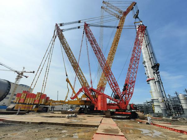 中國石化新聞網(wǎng)訊 國慶期間,煉化工程集團起運公司海南項目全體員工奮戰(zhàn)一線,10月4日,在4000噸履帶吊和900噸履帶吊配合下,協(xié)助安裝單位對乙烯塔進行“穿衣戴帽”。這是4000噸履帶吊在海南項目的第三次“亮劍”。10月7日,直徑6米、高度89.91米、重量711噸的乙烯塔,歷時3小時,順利完成吊裝作業(yè)。(趙宏飛)