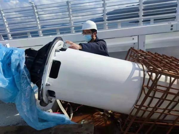 項(xiàng)目人員對(duì)鋼箱梁倉內(nèi)進(jìn)行清洗