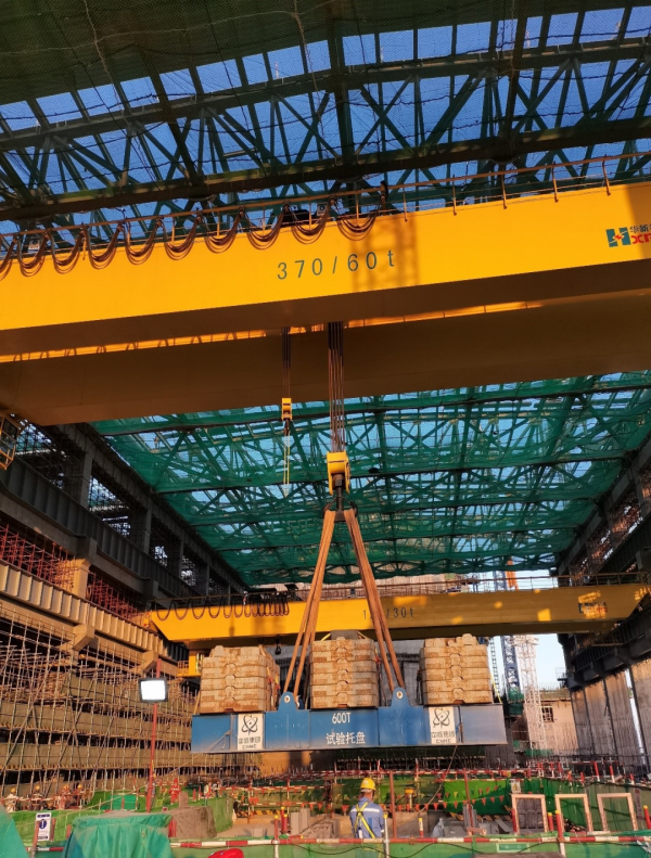 “華龍一號”漳州核電1號機組常規(guī)島兩臺主行車上下錯層布置,每臺行車各配備兩個吊鉤,每個吊鉤均需通過空載、額載、靜載、動載等一系列試驗驗證。