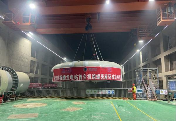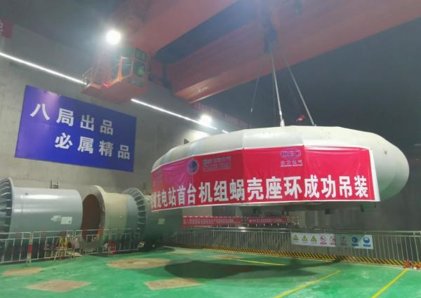中國(guó)基建報(bào)訊(撰文|劉治溶 攝影|劉治溶、劉婷婷)5月12日上午9點(diǎn)41分,由中國(guó)水電八局參建的重慶蟠龍抽水蓄能電站首臺(tái)機(jī)組蝸殼座環(huán)順利完成吊裝,迎來了電站機(jī)組設(shè)備安裝的重要里程碑,標(biāo)志著重慶蟠龍抽水蓄能電站正式進(jìn)入機(jī)組埋件安裝高峰期。