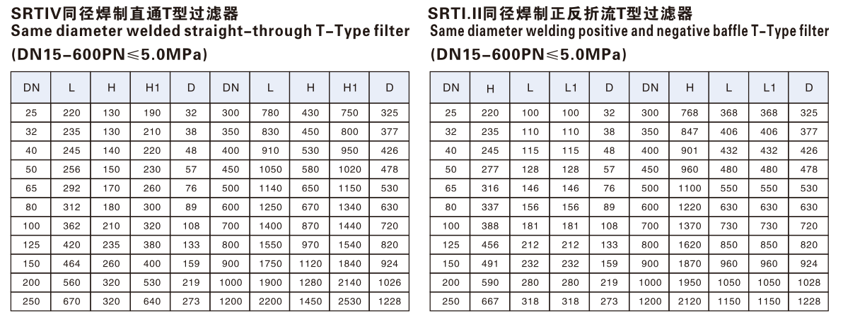 ST16C、ST34C 型 T型過濾器主要性能參數(shù)
