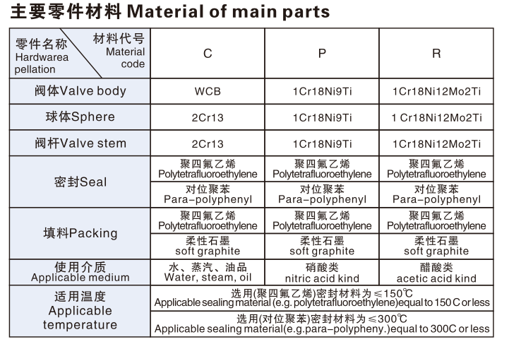 | 密封圈 | 聚四氟乙烯(PTFE)、增強聚四氟乙烯(PPL)、對位聚苯、柔性石墨 | |||