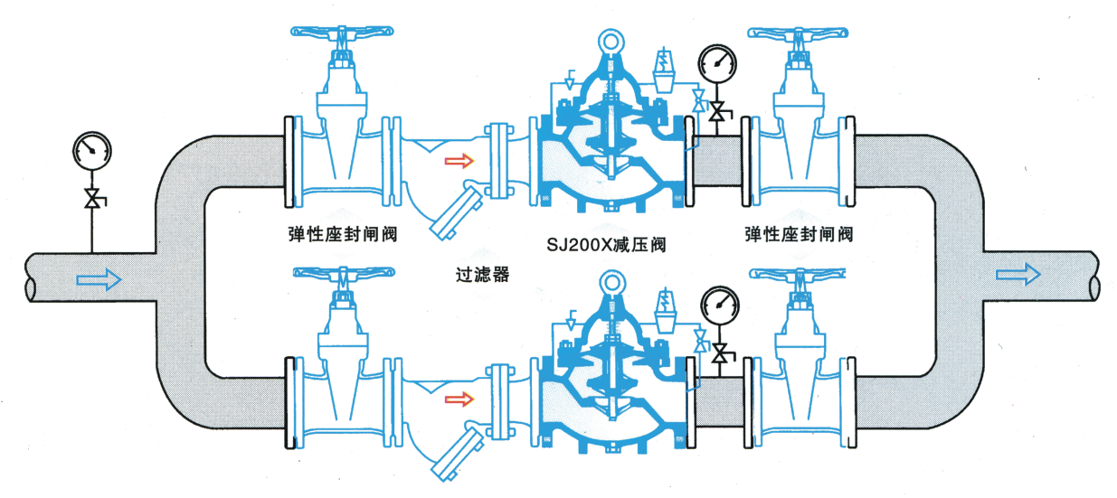 SJ200X減壓閥能控制主閥的固定出口壓力,不因主閥上游進(jìn)口壓力變化而改變,亦不因主閥下游出口用水量變化而改變其出口壓力。