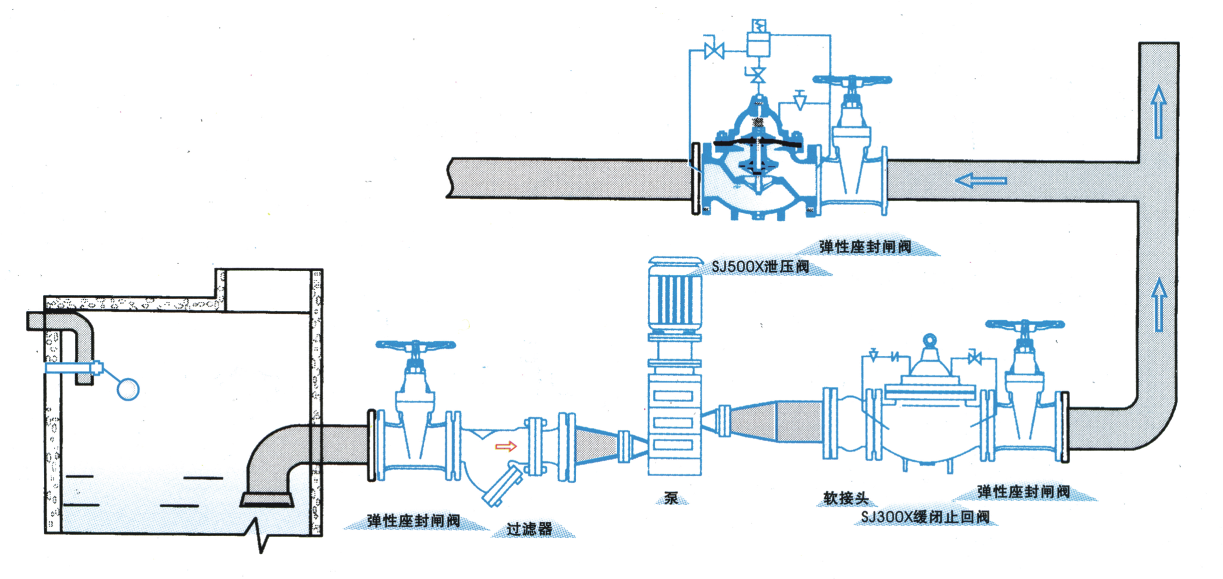 該閥主要用于管路系統(tǒng)中,以防止管路系統(tǒng)超壓或維持管路的壓力,當(dāng)泵關(guān)閉后還可以減少水錘沖擊。也可用于大型供水系統(tǒng)的水錘消除裝置,并且閥門控制系統(tǒng)的進(jìn)口處裝有一個(gè)自清洗濾網(wǎng),利用流體特性,使比重較大、直徑較大的懸浮顆粒不會進(jìn)入控制系統(tǒng),確保主閥的上游供水壓力某一設(shè)定值上使系統(tǒng)循環(huán)暢通無阻,該閥起閉靈敏、安全可靠、動作平穩(wěn)、使用壽命長.