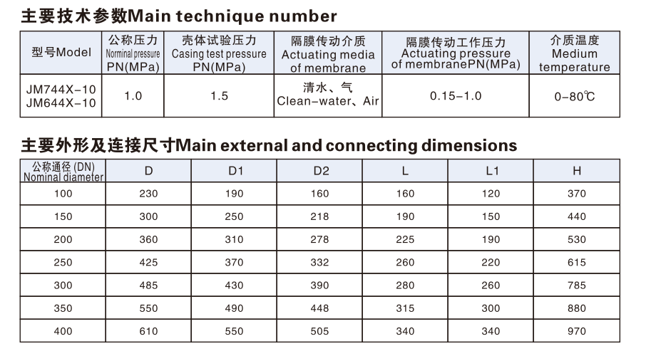 隔膜式排泥閥技術(shù)參數(shù):